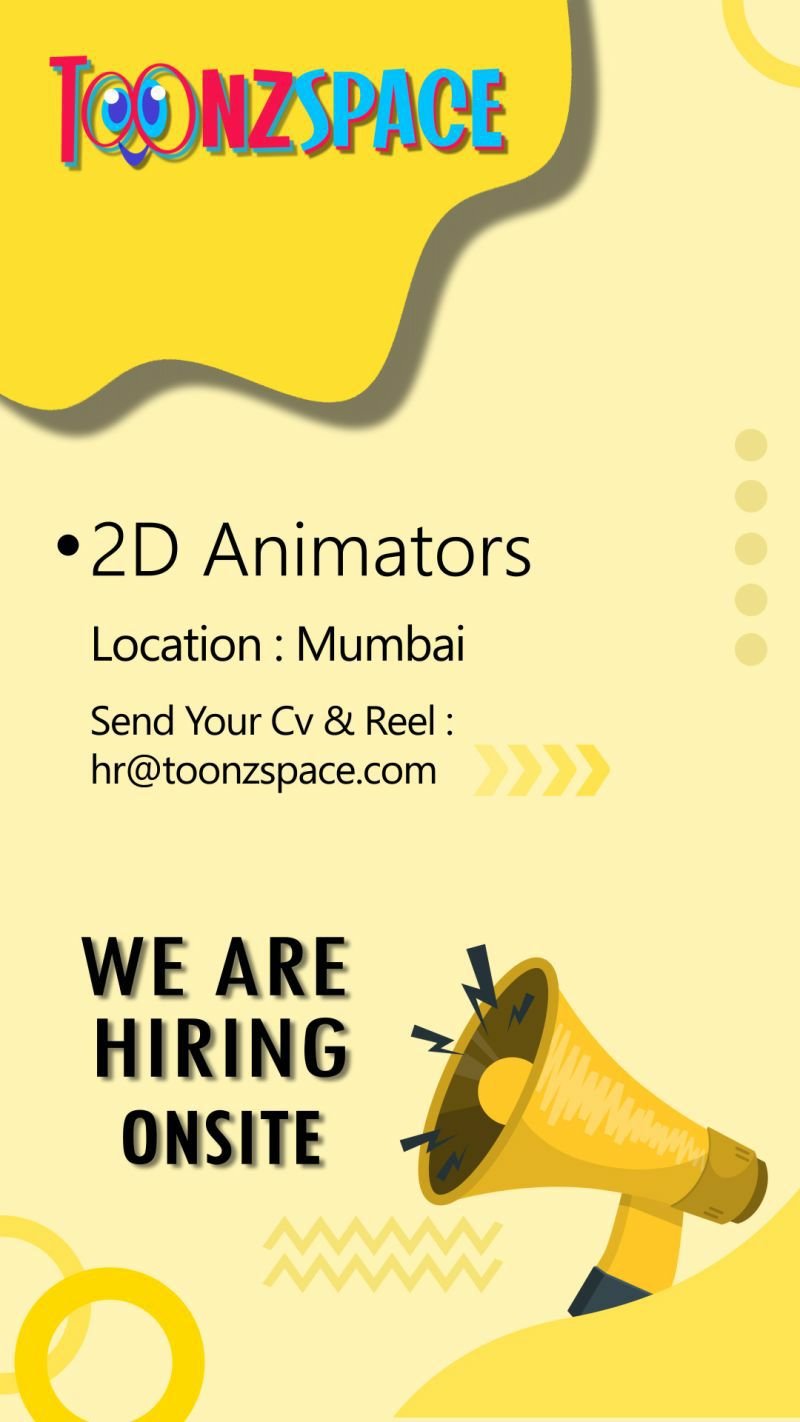 ToonzSpace is hiring Onsite 2D Animators ! If you’re passionate to work in international & few of changeling Indian shows, then join us! send your resume along with a Showreel: hr@toonzspace.com Flash Animators: 2+ Experience with good drawing skills.