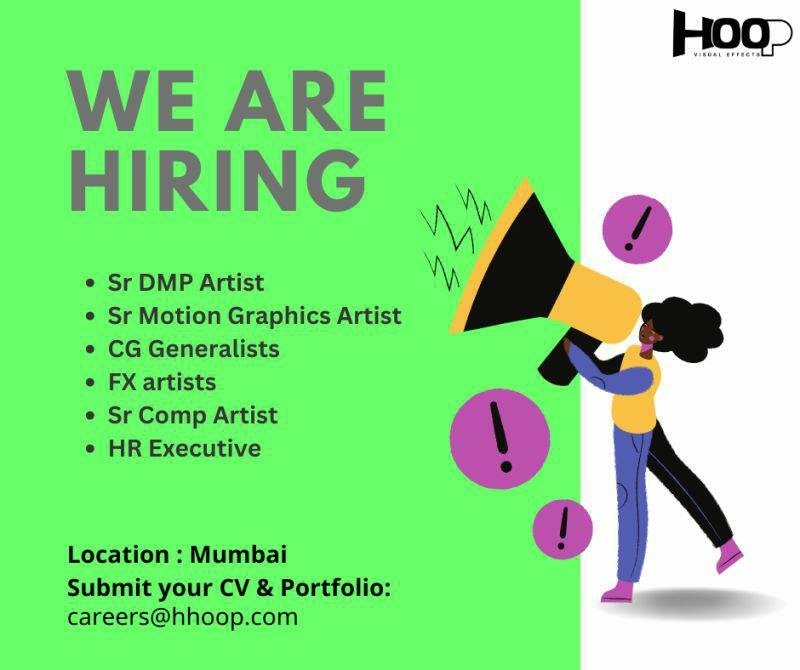 Hoop VFX : HIRING ALERT! Hiring for our Mumbai location! Please send your cv and reel to careers@hhoop.com