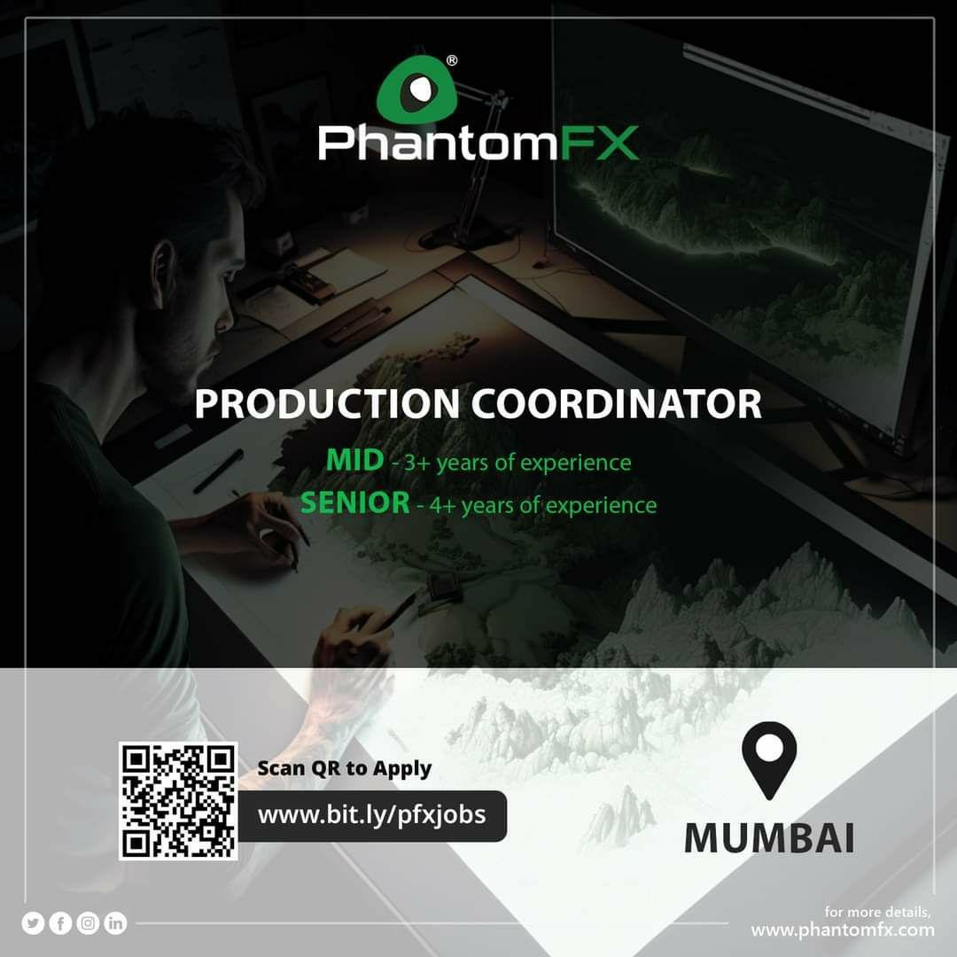 PhantomFX is Hiring @ Mumbai Studio! We are looking for experienced Production Coordinators (Mid/Senior) Join us to experience the best workculture & work on some incredible projects. Apply now! https://zurl.co/WMux