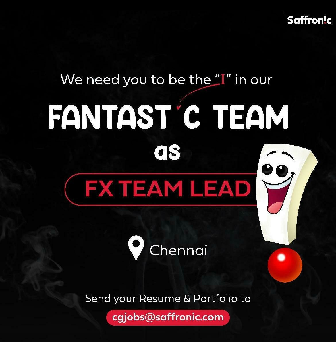 Saffronic is HIRING….! Do you have experience in creating everything from magical pixie dust to flying squirrels? Well, then you are exactly who we are looking for to join our fantastic team. Saffronic is hiring FX Team Lead for our Chennai studio. Interested candidates do send us your resume and portfolio to cgjobs@saffronic.com