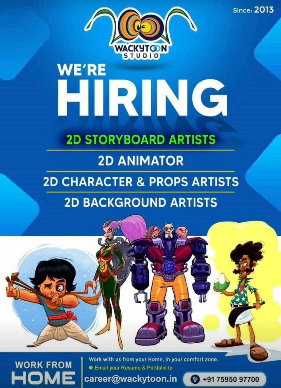Dear Creative Minds , now its your turn to turn the table … Interested candidates can send their CVs with their recent work portfolio at career@wackytoon.in